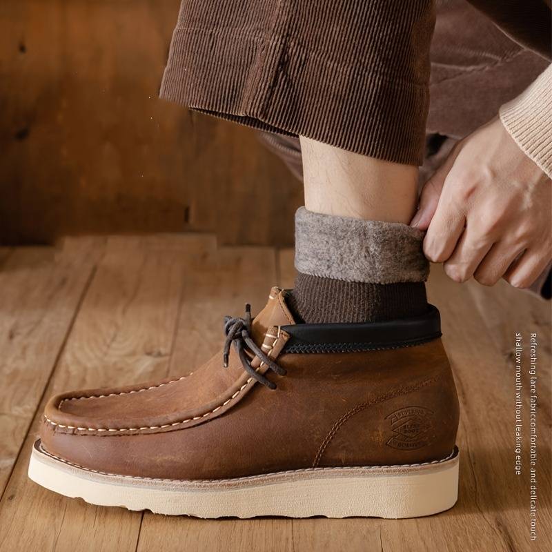 "Stay warm and comfortable all winter with our 5-Pair Men's Winter Soft Thick Warm Fleece Thermal Socks. Designed to provide maximum insulation, these socks feature a soft fleece lining that traps heat, keeping your feet cozy in the coldest conditions. Made from high-quality, durable materials, these thermal socks offer a snug fit that ensures comfort throughout the day, whether you’re indoors or outdoors. Perfect for winter sports, hiking, or simply staying warm at home, these thick, breathable socks are a must-have for anyone looking to beat the chill this season. Stock up with this 5-pair pack and keep your feet toasty all winter long."